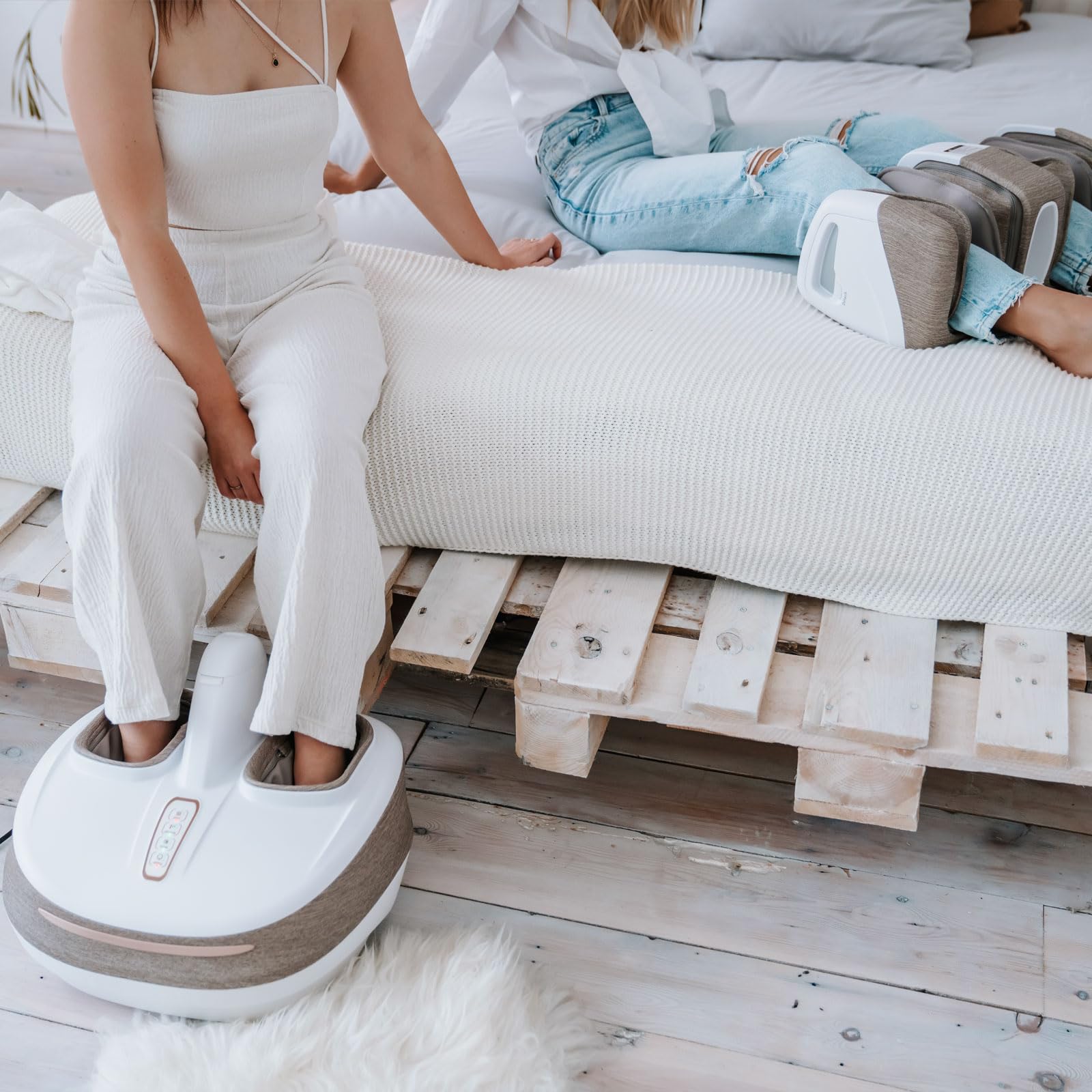 - Vielseitige Massagen: Dieses Gerät bietet sanfte Massagen für Füße, Waden und Hände dank Soft-Touch-Technologie. Es gewährleistet umfassende und wohltuende Entspannung.